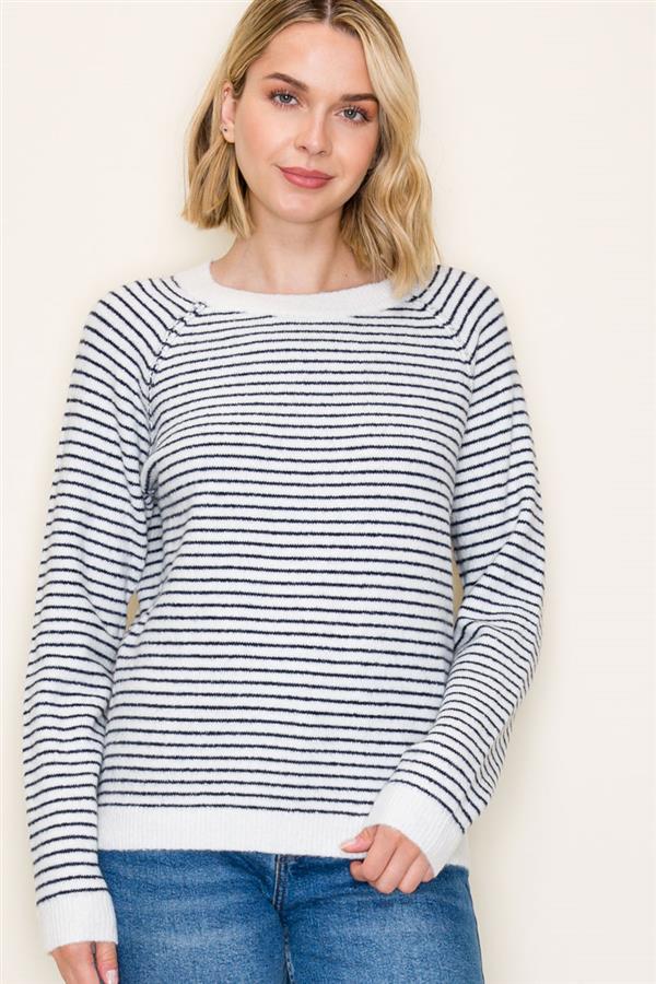 A timeless staple with a fresh twist—this lightweight striped knit is the definition of chic and easy. Designed with a relaxed fit, soft ribbed cuffs, and a versatile crew neckline, it pairs perfectly with denim or layered under your favorite jacket. Whether you’re heading to brunch or running errands, this everyday essential keeps your look polished and effortless.