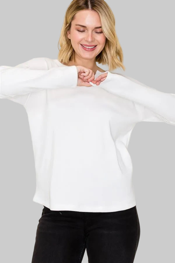 This white waffle knit top is a timeless layering piece that blends comfort with casual style. Its lightweight, breathable fabric makes it perfect for year-round wear, while the textured waffle knit adds subtle detail. Pair it with jeans and sneakers for a laid-back weekend look, or layer it under a jacket or cardigan for added warmth and dimension. Dress it up slightly by tucking into tailored trousers and adding loafers, or keep it cozy with leggings for lounging. A versatile closet staple you’ll reach for again and again.